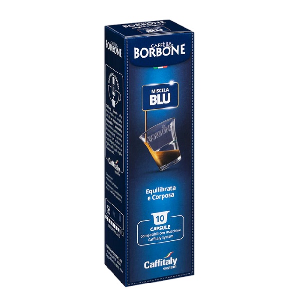 Rotonda e Corposa – Intensità 8Dal gusto rotondo e corposo, con aroma persistente ed equilibrato.Tutto il piacere dell’espresso napoletano come al bar, anche a casa, con le Capsule Originali Caffitaly®* declinate nella miscela Blu Caffè Borbone.
